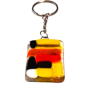 Duo de 2 porte-clés artisanaux en verre Spectrum Oceanside jaune et orange, chacun renfermant un vrai mécanisme horloger incrusté entre deux plaques de verre fusionné. Chaleureux, graphique et unique — deux mécanismes différents pour deux histoires distinctes. Dimensions : 4,5 x 3 cm chacun. Fait main France.